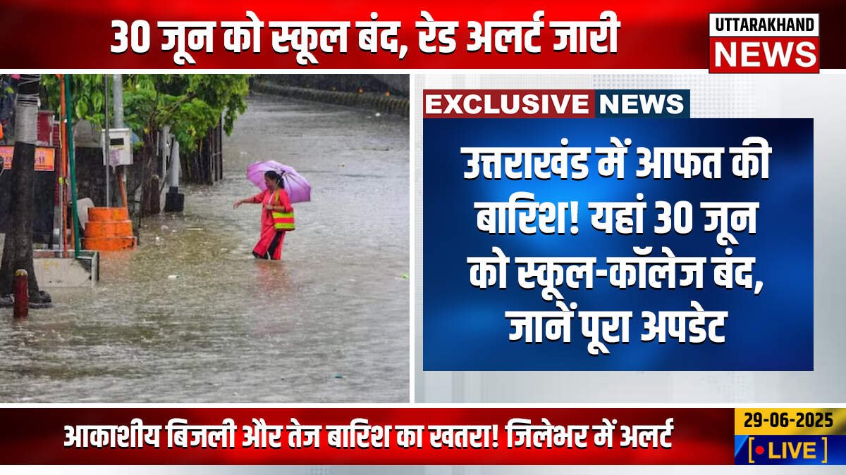 Uttarakhand News : उत्तराखंड में आफत की बारिश! यहां 30 जून को स्कूल-कॉलेज बंद, जानें पूरा अपडेट