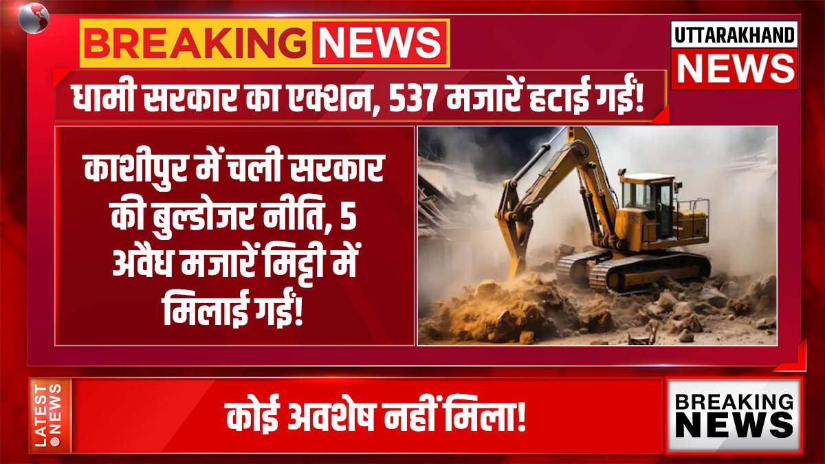 Uttarakhand News : काशीपुर में चली सरकार की बुल्डोजर नीति, 5 अवैध मजारें मिट्टी में मिलाई गईं