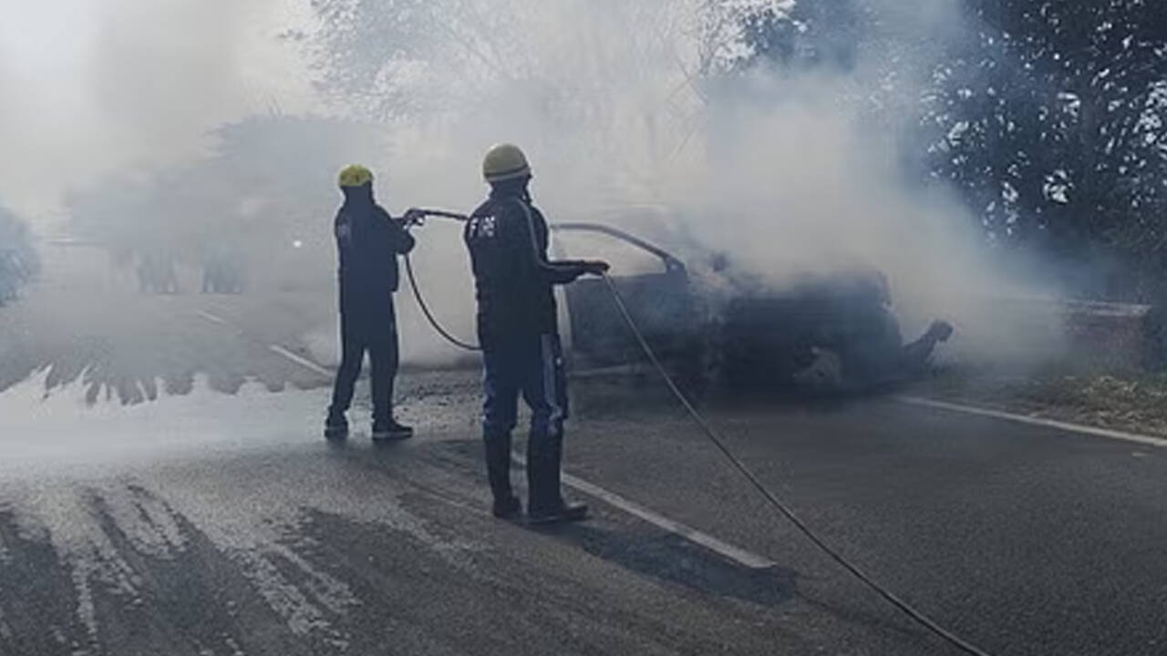 तेज़ रफ्तार का कहर! आमने-सामने की टक्कर से धू-धू कर जली कार, दो लोग लापता, दो की पुलिस ने बचाई जान