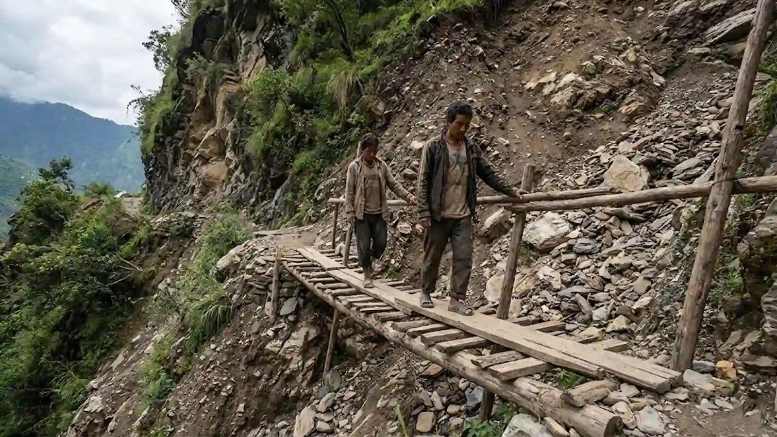Uttarakhand : चार महीने से बल्लियों के सहारे जी रहे गुनाड़ गांव के लोग, कब होगी मरम्मत?