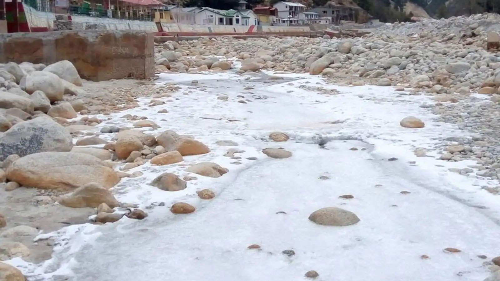 उत्तराखंड गंगोत्री में सूखी ठंड का असर, नदी पर जमी बर्फ की मोटी परत